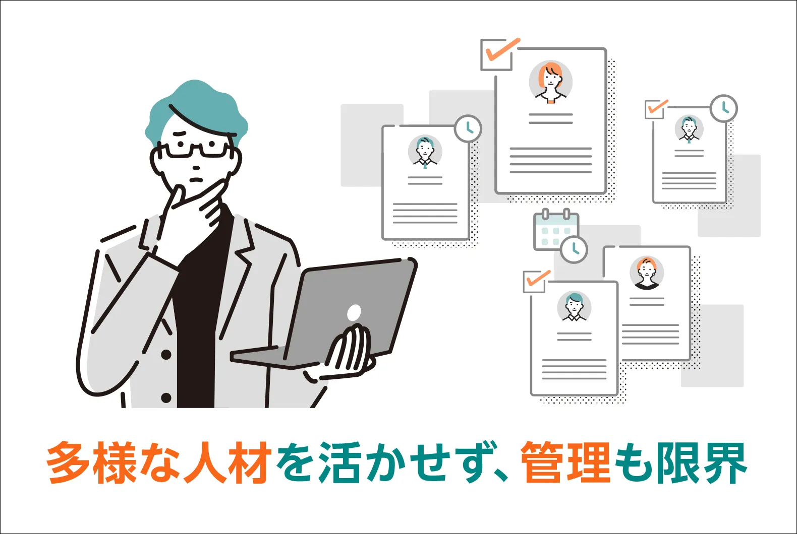 - 雇用形態が複数あるため、Excelによる個別管理が発生